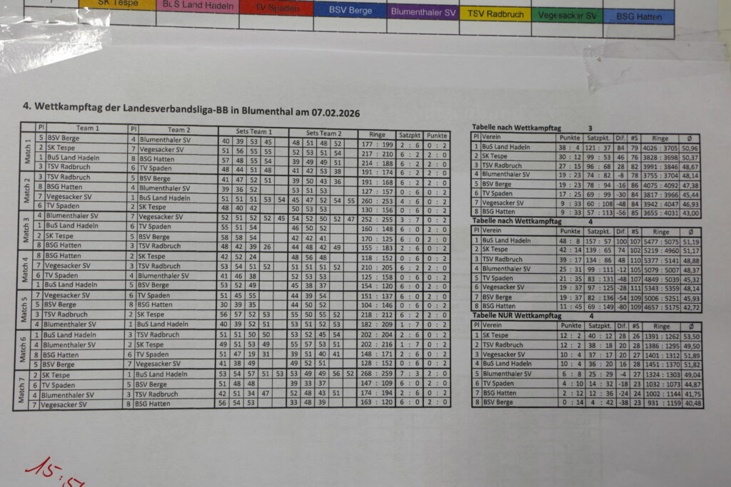 Aus Vegesacker Sicht war dieser Wettkampftag äußerst erfreulich. Man konnte eine regelrechte Aufholjagd starten und war in der Tageswertung hinter den führenden Teams die dritte Kraft. Nach dem geschossenen Schnitt gewertet, hatte man sogar den zweiten Rang. Insgesamt wurden von den 7 Matches 5 gewonnen und nur 2 knapp verloren. (Sogar das freundschaftliche „Prestigeduell“ gegen den benachbarten Blumenthaler SV konnte mit 7:3 gewonnen werden).