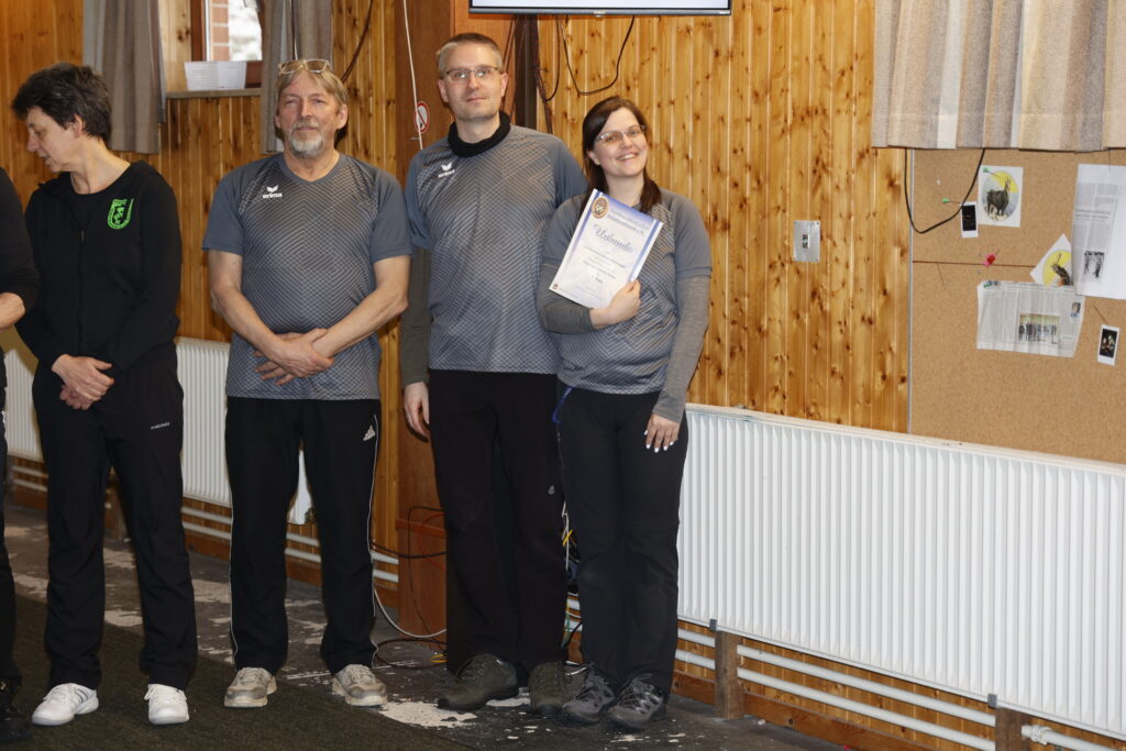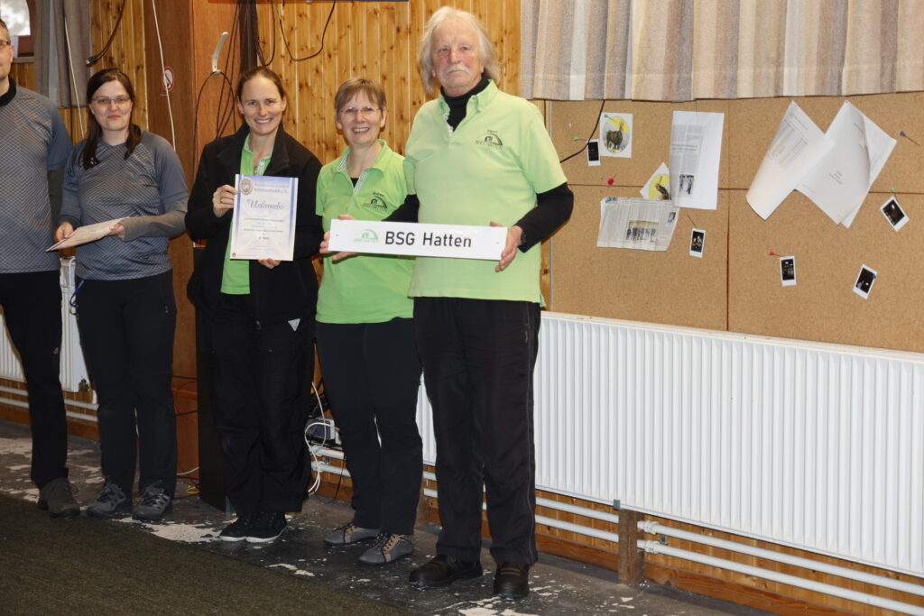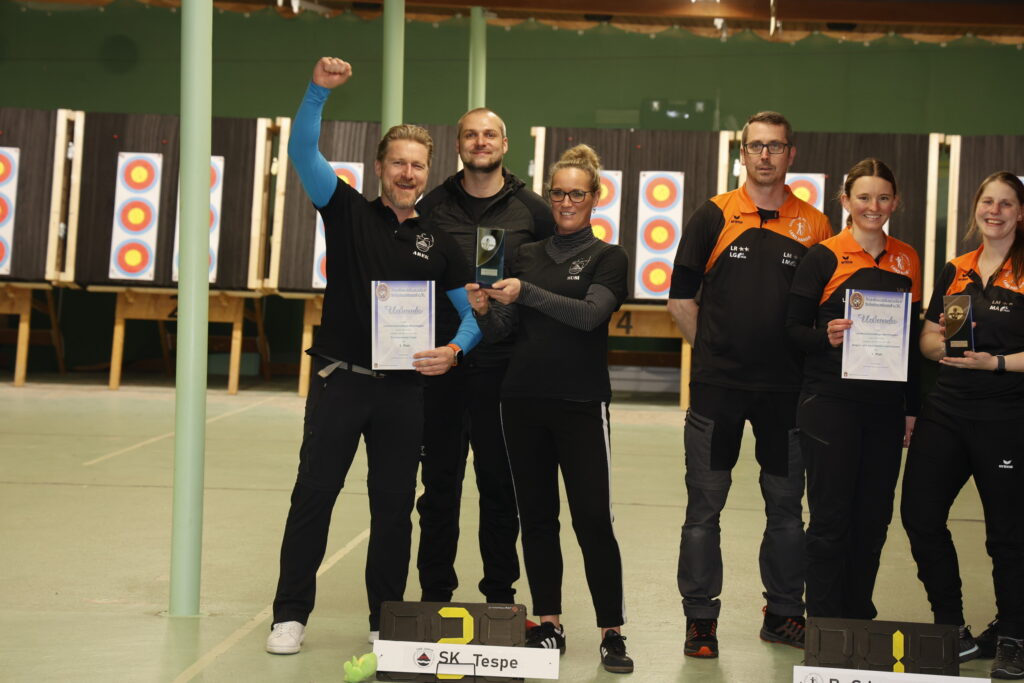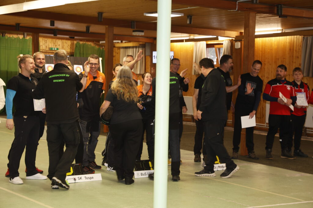 In der Endabrechnung rückte der Vegesacker SV dann sogar doch noch unerwarteter Weise auf den 6. Platz nach vorne. Dabei kam natürlich entgegen, dass der SV Berge einen rabenschwarzen Tag hatte, und ohne Punktgewinn den Vegesacker SV an sich vorbeiziehen lassen musste. Die Mannschaftsführerin, Dagmar, meinte dazu auch: „Eigentlich waren wir hauptsächlich darauf aus, den vorletzten Platz zu verteidigen. Dass wir noch einen Platz nach vorne rücken konnten, ist umso erfreulicher und belohnt aber auch unsere gute Leistung, die wir heute gebracht haben. Wir schossen viele Sätze mit Ergebnissen weit in den 50ern.“ Man hatte an diesem Wettkampftag aber auch das Glück, dass man auch mal knapp mit einem oder zwei Ringen einen Satz gewann. Man hatte an den anderen Wettkampftagen zu oft mit einem Ring das Nachsehen.
